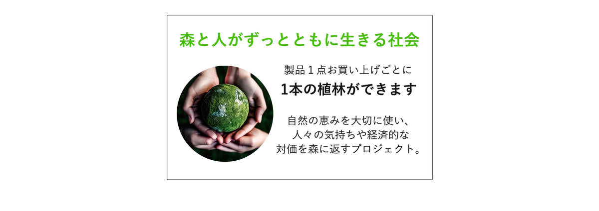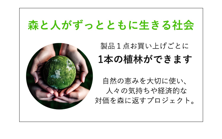 売上の一部は、森林保全団体への寄付、環境保全への活動に使用させていただきます。