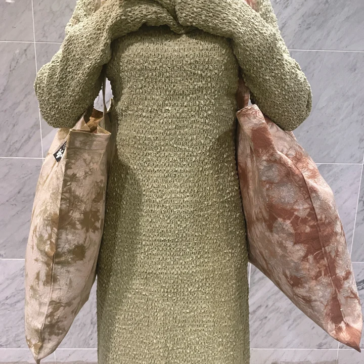 お花屋さんで廃棄分の ”ロスフラワー” を回収し、ボタニカル染めとして、もう一度その命を巡らせる手染めのシリーズ[Loss Flower Originals]